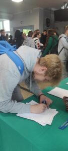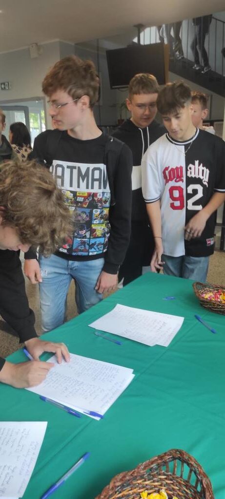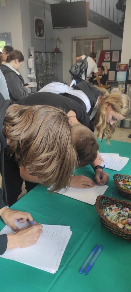 Dobrą tradycją naszej szkoły jest szeroka oferta działań o charakterze wolontaryjnym. Są one podejmowane z myślą o drugim, bardziej potrzebującym człowieku. Nasi wolontariusze każdego roku starają się dostrzegać tych, dla których los okazał się mniej życzliwy. To właśnie im chcemy pomagać w miarę naszych możliwości. Jest to oczywiście możliwe dopiero wtedy, gdy nasi uczniowie formalnie przystąpią do grona wolontariuszy ZSM. W tym celu 26 września zorganizowane zostały w naszej szkole zapisy do Szkolnego Koła Wolontariatu. Podczas każdej z przerw przy płynącej z głośników muzyce nasza młodzież wpisywała się na listę, zostając w ten sposób szkolnymi wolontariuszami. Bardzo cieszy nas fakt, że także i w tym roku liczba osób chcących nieść pomoc innym jest ogromna – chęć wstąpienia do Szkolnego Koła Wolontariatu zgłosiło bowiem ponad 300 osób. Jest to grono ludzi, dla których drugi człowiek jest naprawdę ważny.