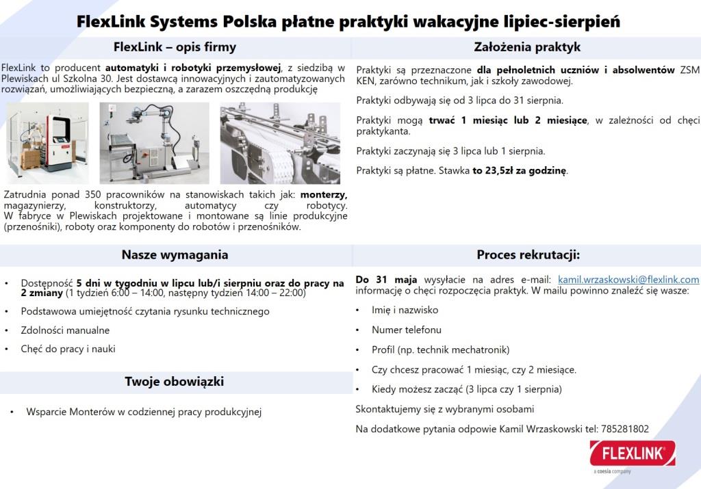 FlexLink płatne praktyki wakacyjne