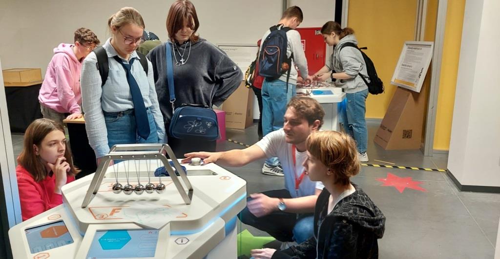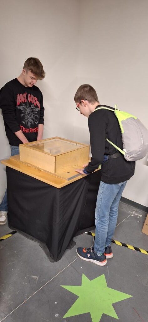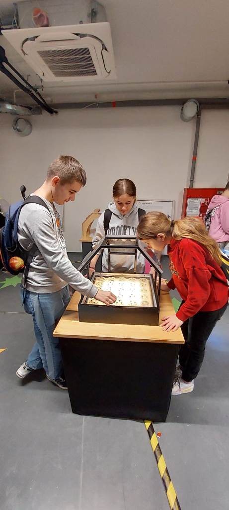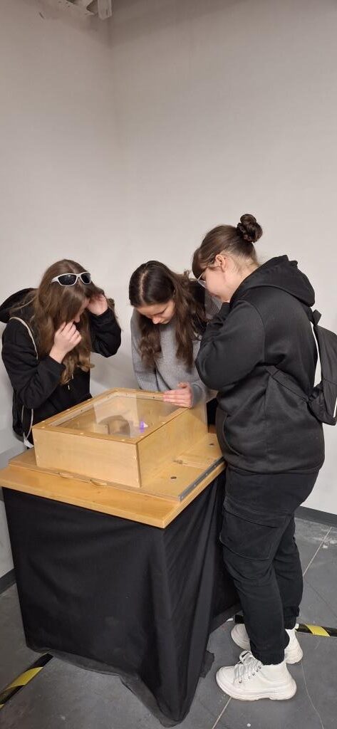 10 listopada klasa 1T2 odkrywała fascynujący świat zjawisk fizycznych w Centrum Nauki Wyobraźnia. Warsztaty “Manualnia”, w których uczestniczyli uczniowie, pozwoliły eksperymentalnie zbadać oraz zrozumieć różnorodne zjawiska optyczne i fizyczne. Pod okiem edukatora m.in. doświadczyliśmy, jak trudno jest pokonać labirynt, patrząc w jego lustrzane odbicie, wykonaliśmy anaglify z rzucanych cieni, a także zbudowaliśmy prosty układ elektroniczny.