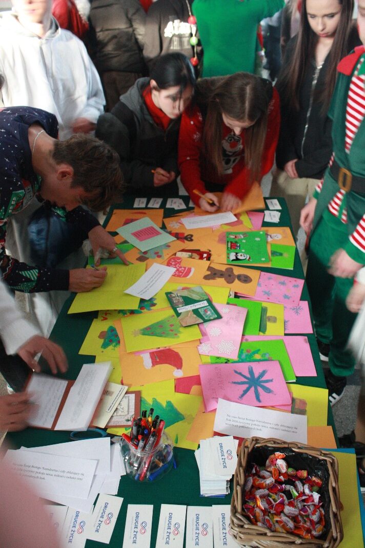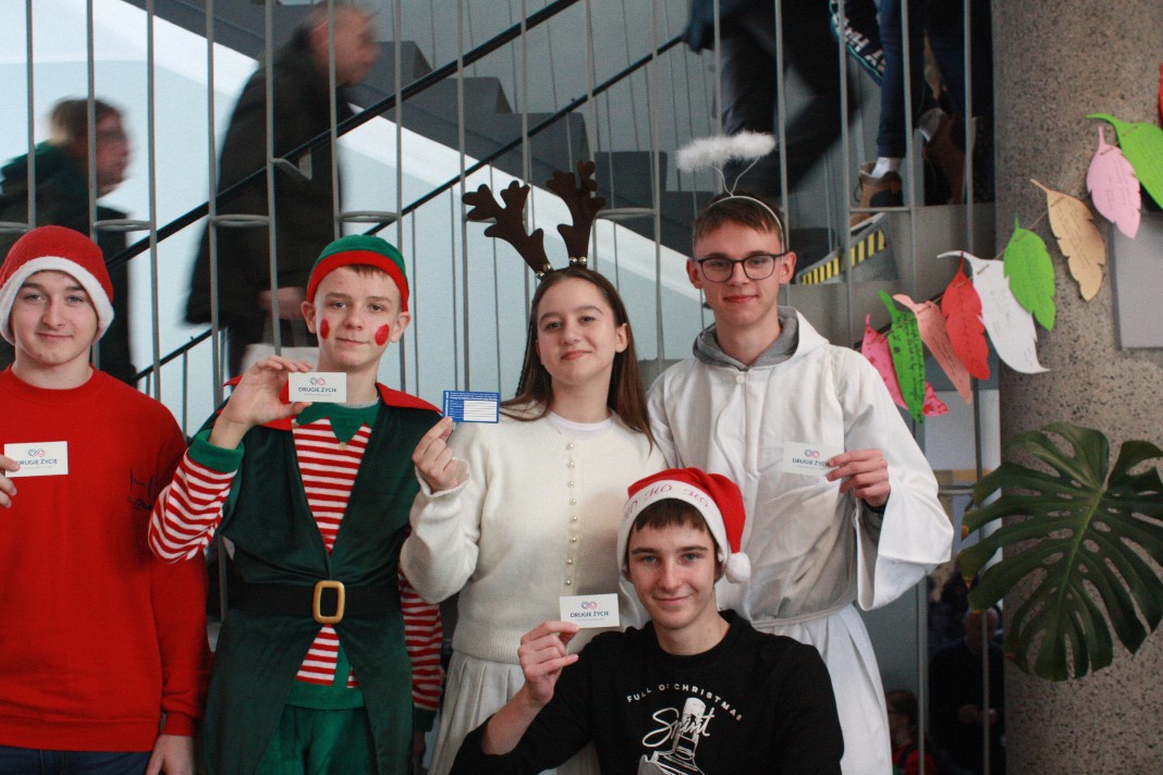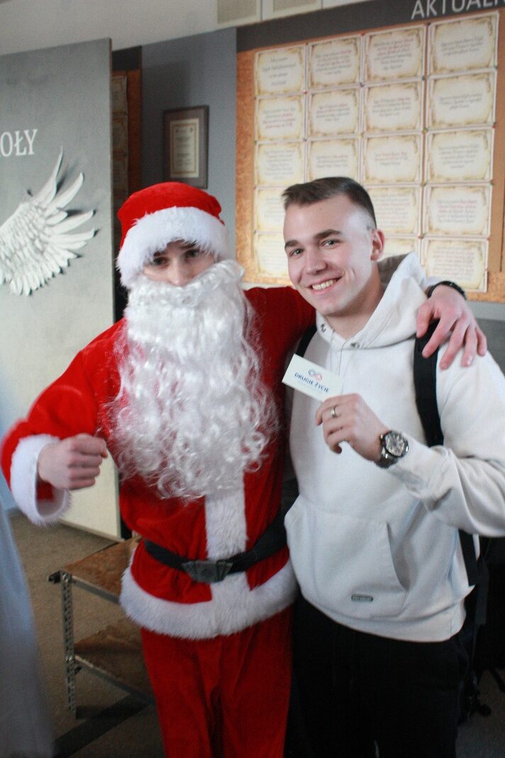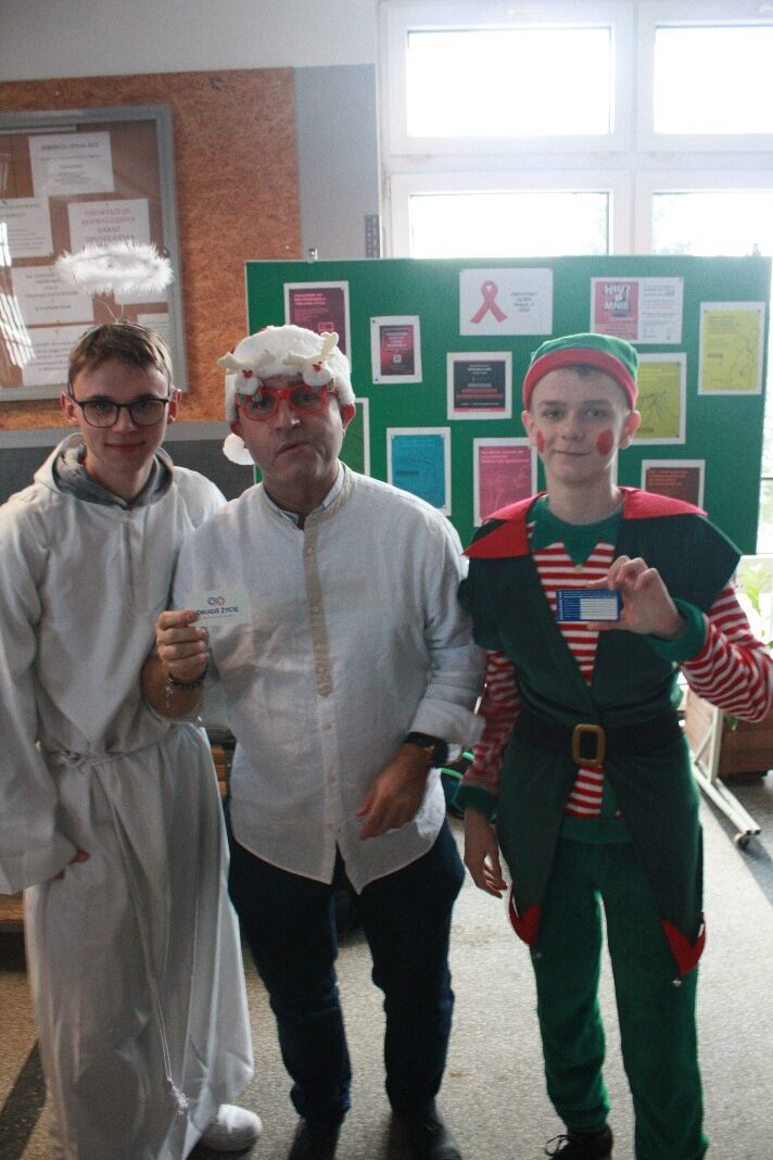 Dodatkowym walorem jest również to, że eventy organizowane już od jakiegoś czasu przez Samorząd Uczniowski posiadają zawsze, dodatkowo, charakter pomocowy. Tym razem postanowiliśmy połączyć nasze Mikołajki z działaniem promującym Transplantację i Oświadczenie woli, jako dokument ratujący zdrowie i życie człowieka. Dlatego też przebrani członkowie naszego Samorządu Uczniowskiego pozowali do zdjęć z Oświadczeniem woli, ukazując wagę tego dokumentu w dziele ratowania życia i zdrowia.