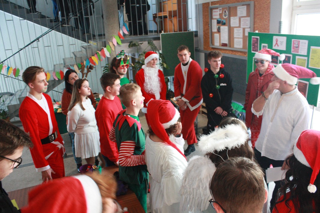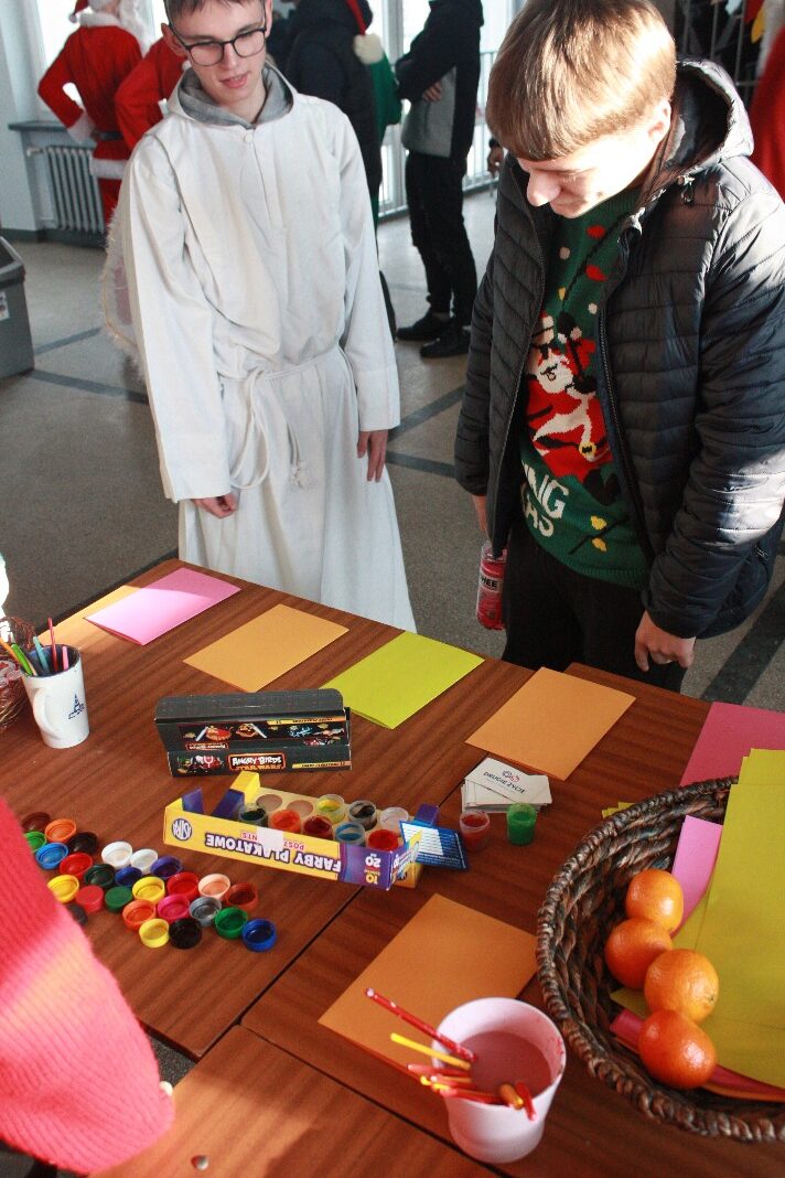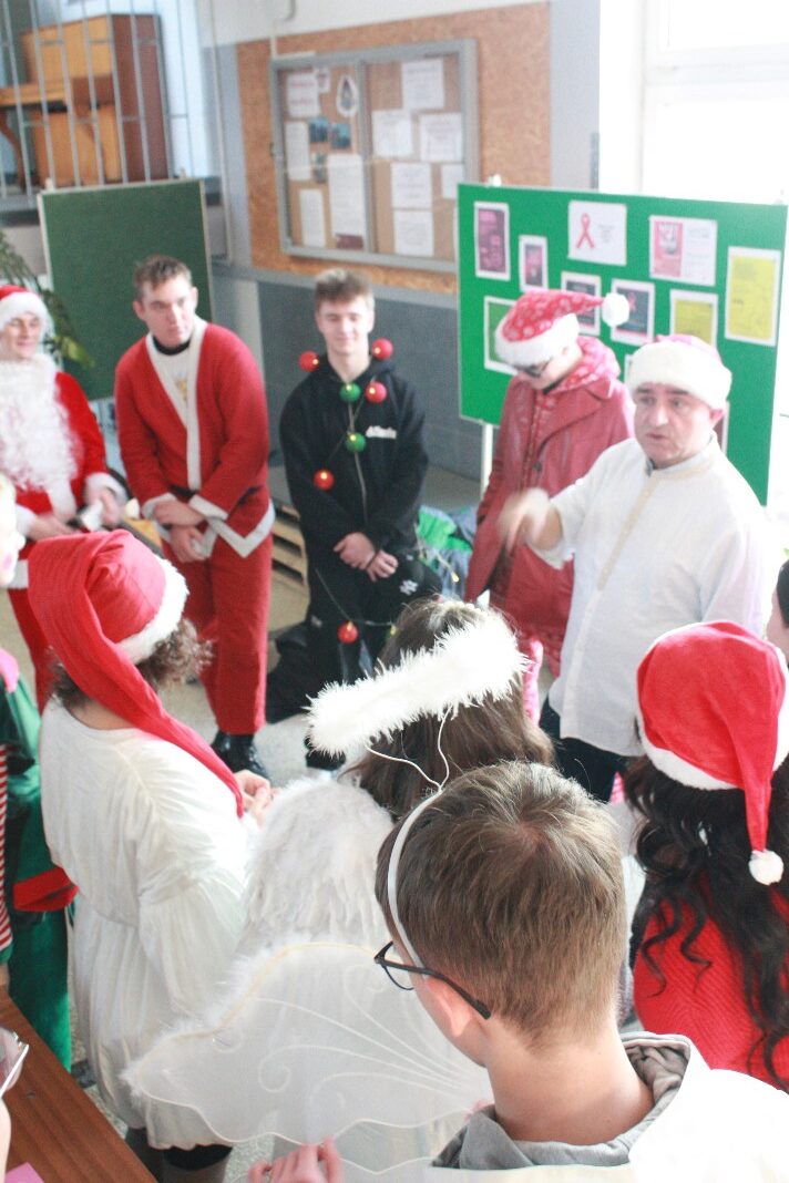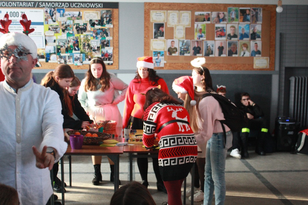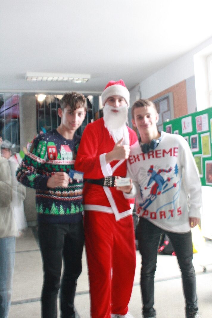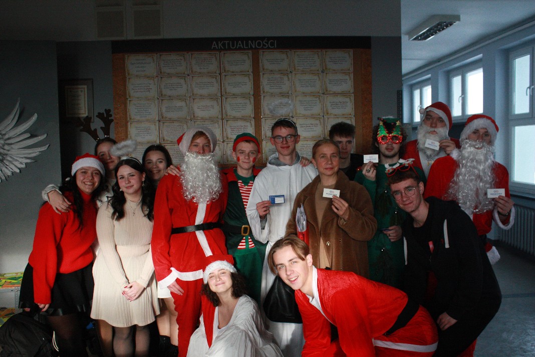 Dobrą tradycją naszej szkoły jest organizacja okolicznościowego eventu, poświęconego temu właśnie dniu. Staramy się, aby nastrojowa muzyka, zabawy oraz okolicznościowy strój naszych uczniów przypominał nam, w jakim wydarzeniu uczestniczymy. Cieszy nas fakt, że również w tym roku udało się nam je zorganizować. Tym razem święto to obchodziliśmy wcześniej, 05 grudnia, ze względu na to, że od dnia 06 grudnia trwały w szkole próbne matury. W holu I piętra słychać było świąteczną muzykę, a nasi uczniowie, przebrani w świąteczne stroje, starali się sprawić, aby ten dzień był dla wszystkich wyjątkowo przyjemny.