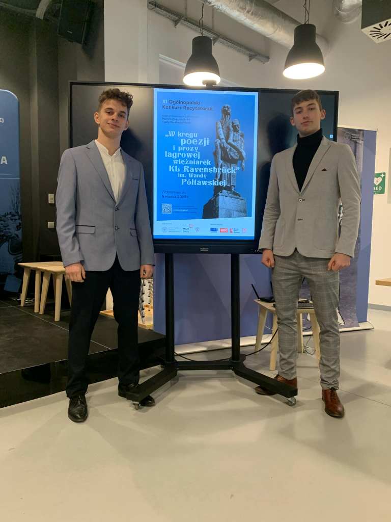 12 marca 2025 roku Alan Tomaszewski i Dawid Ziemecki reprezentowali szkołę w półfinale XI Ogólnopolskiego Konkursu Recytatorskiego im. Wandy Półtawskiej- “W kręgu poezji i prozy lagrowej więźniarek obozu kl Ravensbruck”. Każdy zaprezentował jeden utwór poetycki i fragment prozy. Dawid Ziemecki zakwalifikował się do finału, który odbędzie się na początku kwietnia w Katowicach. Uczniowie zostali przygotowani przez p. Monikę Ograbek.
