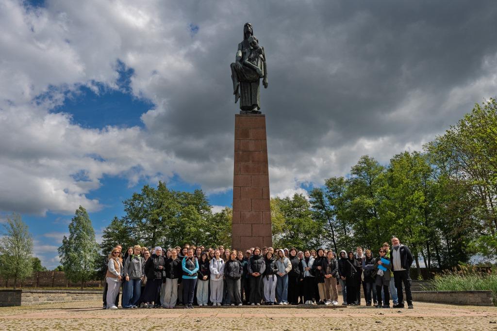 Ten cytat przywitał grupę laureatów XI Ogólnopolskiego Konkursu Recytatorskiego „W kręgu poezji i prozy lagrowej więźniarek obozu KL Ravensbrück”, którzy w ramach zakończenia eliminacji zaproszeni zostali do wzięcia udziału w nietypowej lekcji historii. W dniach 23-26 maja 2025 roku dzięki zaangażowaniu oddziału IPN w Katowicach uczestnicy konkursu przebywali na terenie byłego obozu. Uczestniczyli w licznych prelekcjach i warsztatach. Miały one za zadanie przybliżyć uczniom los więźniarek, ich codzienność i trud, który pokonywały, wierząc w to, że Polska będzie wolna, a one będą miały szansę wrócić do ojczyzny. Naszą szkołę reprezentował Dawid Ziemecki z klasy 3O5 wraz z opiekunem panią Marzeną Suchowiak. Do konkursu przygotowała Dawida pani Monika Ograbek.