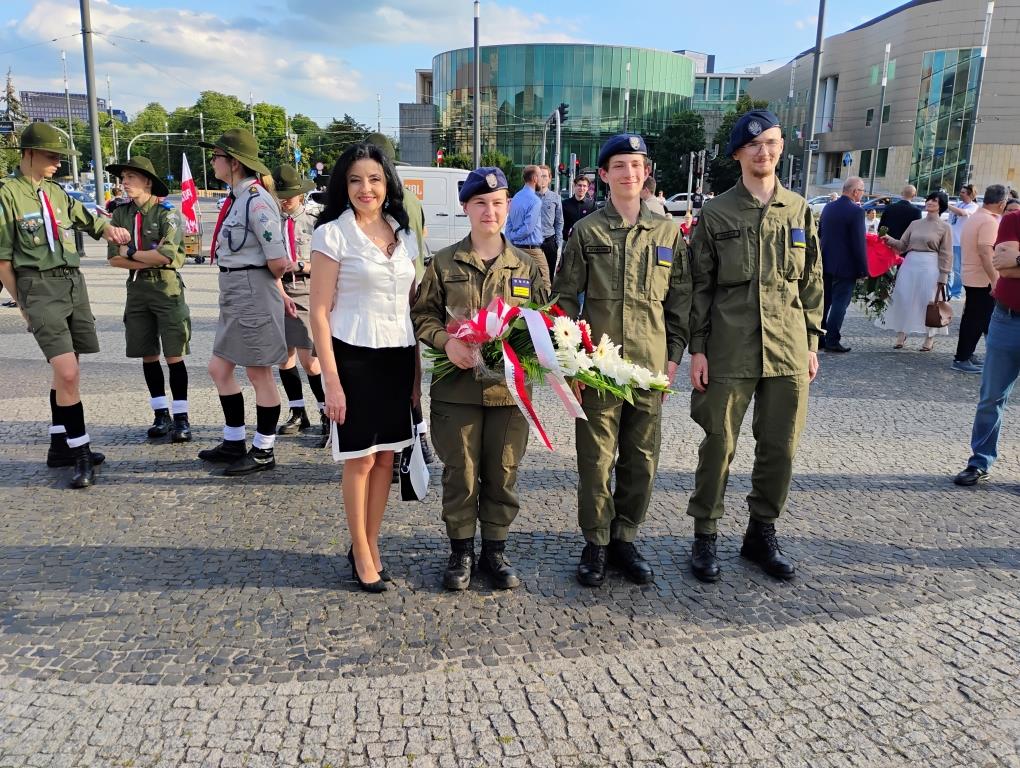 Uczniowie naszej szkoły wzięli udział w uroczystościach upamiętniających Poznański Czerwiec 1956. Kulminacyjnym punktem obchodów była uroczystość na placu Adama Mickiewicza, pod pomnikiem Poznańskiego Czerwca, podczas której przypomniano wydarzenia z 1956 roku. W uroczystości przed Poznańskimi Krzyżami, oprócz uczestników, kombatantów oraz reprezentantów władzy wojewódzkiej i samorządowej, wzięli udział przedstawiciele NSZZ “Solidarność”, parlamentarzyści, poznańscy i wielkopolscy radni, a także przedstawiciele wojska i służb mundurowych. “28 czerwca spotkamy się pod Poznańskimi Krzyżami, by powiedzieć: pamiętamy, nie zapomnimy, nie przestaniemy czcić waszej odwagi i ofiary. Wspólnie z mieszkankami i mieszkańcami Poznania oddamy hołd bohaterom zrywu z 1956 roku, który dał początek walce o takie wartości, jak wolność, solidarność i godność” – powiedział prezydent Poznania, Jacek Jaśkowiak. Wydarzenia sprzed lat przypomniał uczestnik, pan Andrzej Sporny. Na uroczystościach obecna była również pielęgniarka pani Aleksandra Banasiak, która 69 lat temu niosła pomoc rannym. Nasi kadeci Julia Thiel, Mateusz Szymański i Brajan Urbaniak dostąpili zaszczytu towarzyszenia pani Dyrektor Wydziału Wspierania Edukacji w Kuratorium Oświaty w Poznaniu Karolinie Adamskiej podczas składania kwiatów pod pomnikiem.