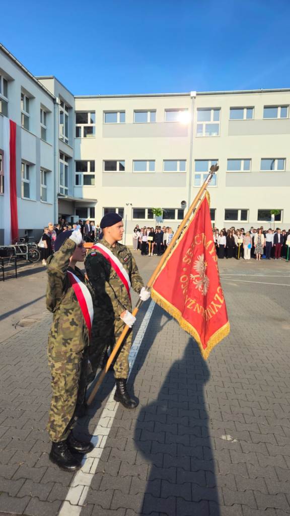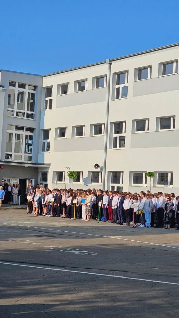 W słoneczny poniedziałek 1 września o godz. 8.00 na dziedzińcu Zespołu Szkół Mechanicznych im. Komisji Edukacji Narodowej odbyła się uroczysta inauguracja roku szkolnego 2025/2026. Akademia rozpoczęła się od wprowadzenia sztandaru szkoły i odśpiewania hymnu państwowego przez całą społeczność szkolną.