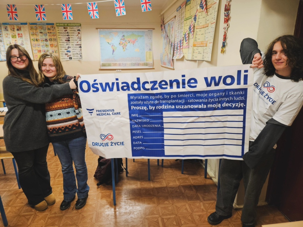 W naszej szkole staramy się, aby młodzież mogła spojrzeć na transplantologię nie tylko jako na zagadnienie medyczne, lecz także jako na historię konkretnych ludzi, ich odwagi i odpowiedzialności. To inicjatywa mająca na celu spójną edukację i stopniowe przybliżanie młodym ludziom tematyki transplantacji. Dzięki temu nasi uczniowie mogą lepiej zrozumieć, jak wiele milowych kroków wykonano w tej dziedzinie oraz jak ogromną rolę odgrywa świadoma postawa każdego z nas.