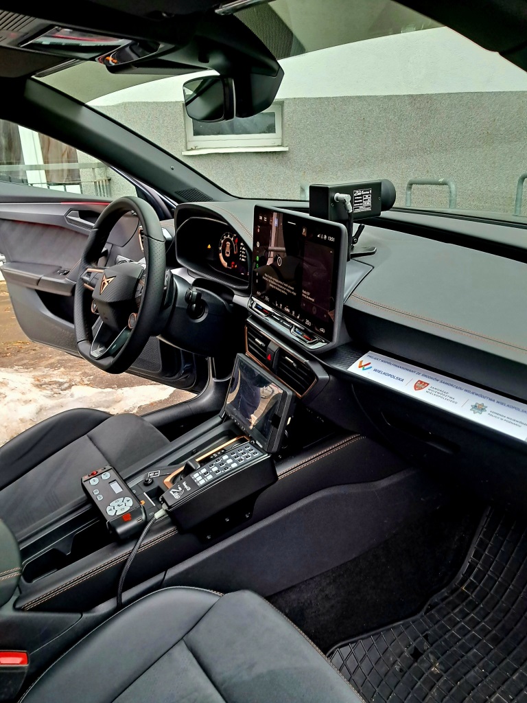 Podczas tegorocznego spotkania uczniowie mieli również okazję zobaczyć nowoczesny radiowóz CUPRA Sportstourer VZ, należący do floty pościgowej wielkopolskiej policji. Pojazd wyposażony jest w: