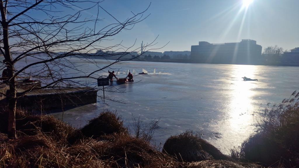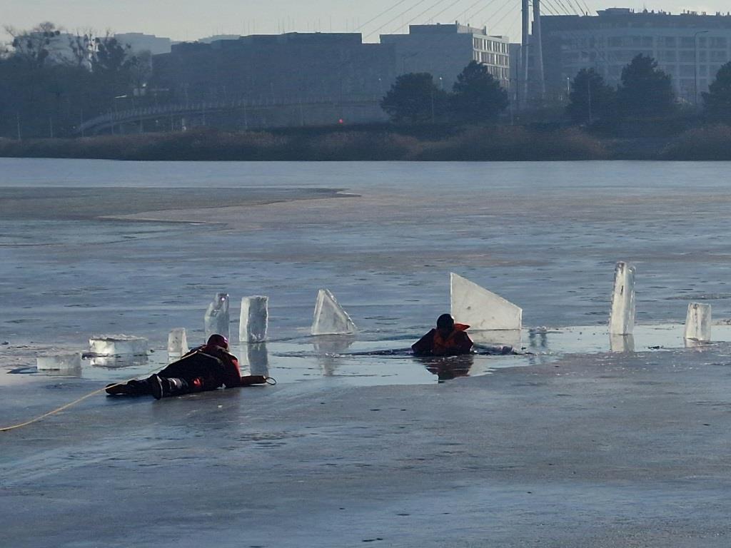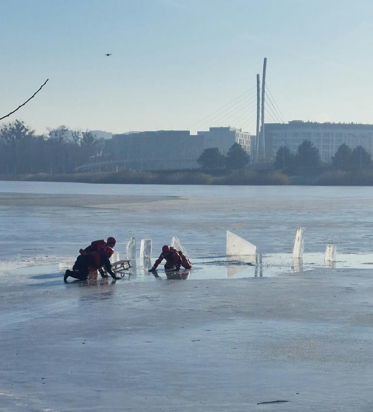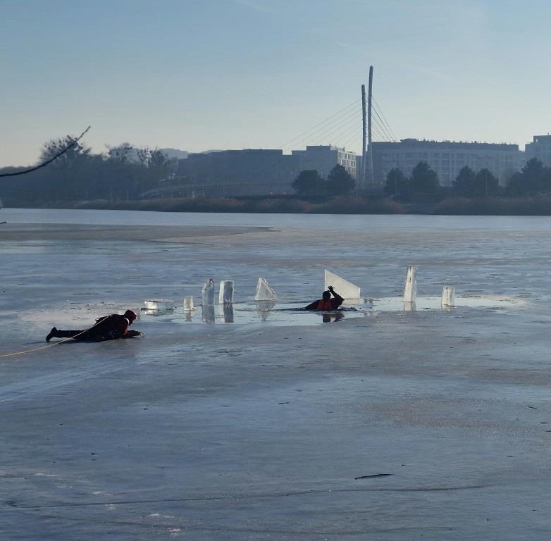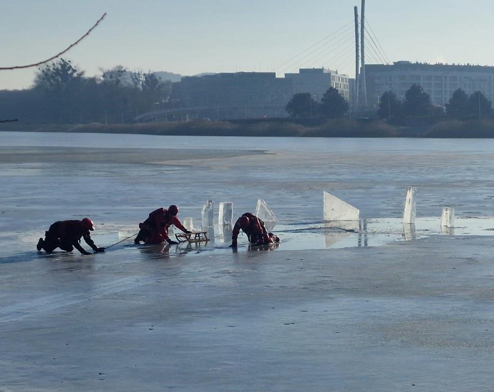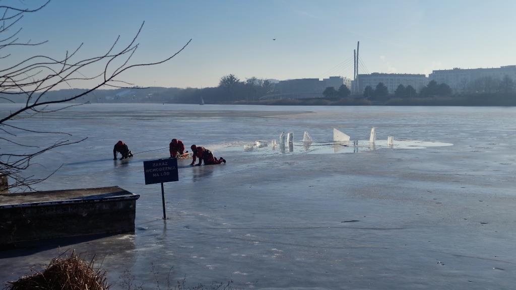 Wielkopolscy strażacy, policjanci i ratownicy medyczni przeprowadzili pokazowe działania ratownicze na pokrywie lodowej jeziora, by uświadomić młodzieży jak niebezpieczne mogą być z pozoru błahe zachowania. Mroźna w tym roku zima przyczyniła się do powstania lodu na wielu większych i mniejszych zbiornikach wodnych, co często zachęca do wejścia na ich powierzchnię.