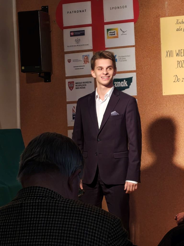 Z ogromną radością informujemy, że zwycięzcą konkursu został Dawid Ziemecki, który zachwycił jury swoją interpretacją poetycką oraz wrażliwością artystyczną. Dzięki temu sukcesowi Dawid otrzymał wyjątkową nagrodę – wyjazd do Brukseli.