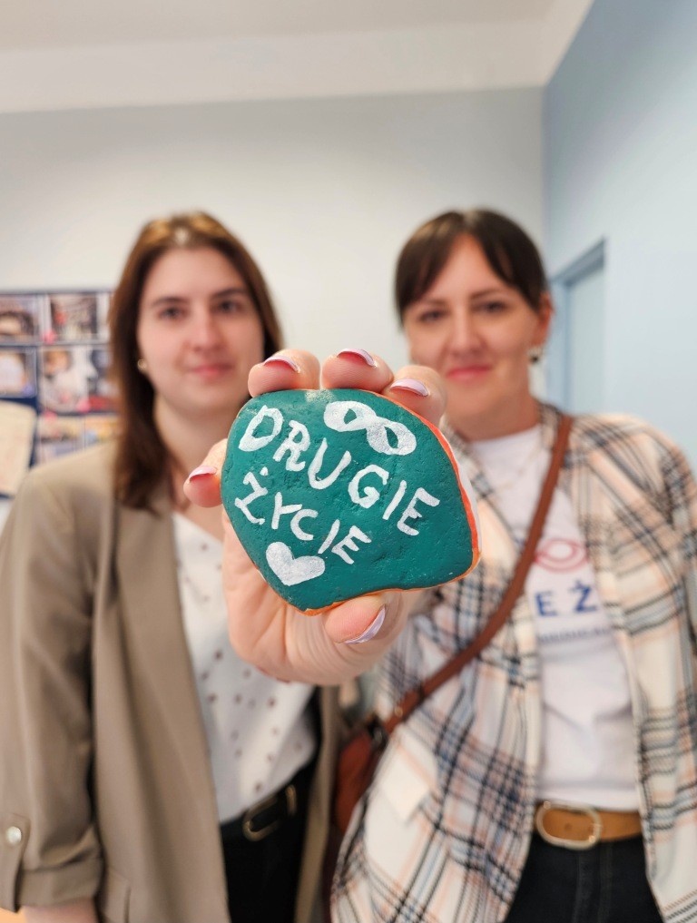 Nie zabrakło również elementu kreatywnego – kolejne namalowane „wędrujące kamienie” trafiły w różne miejsca Poznania. Każdy z nich niesie ze sobą ważny przekaz i zachęca do refleksji nad ideą dawstwa narządów, docierając do przypadkowych przechodniów i rozszerzając zasięg Kampanii poza mury szkoły.