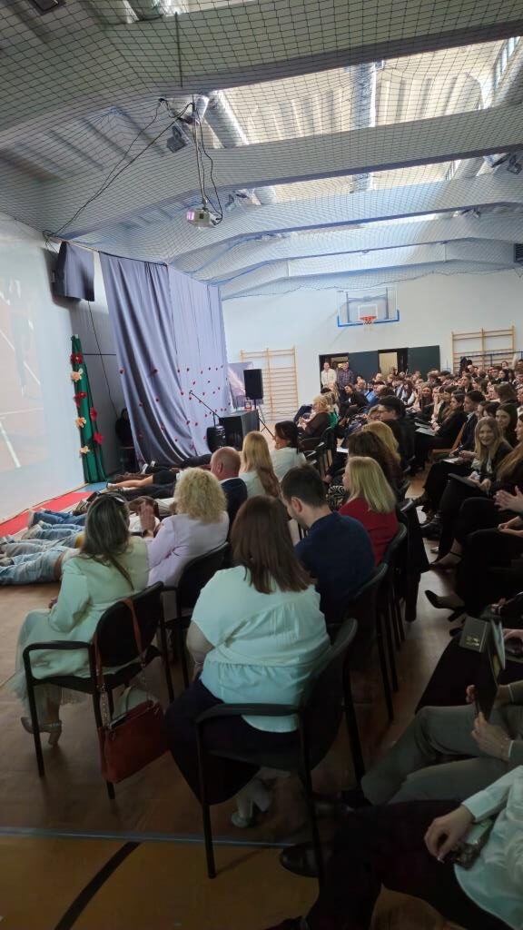 Po części oficjalnej przyszedł czas na bardziej swobodną odsłonę spotkania. Uczniowie klas młodszych przygotowali program artystyczny, który z humorem i dystansem ukazywał codzienność maturzystów – „Rok z życia maturzysty”. Występ wywołał wiele uśmiechów, a jednocześnie stał się okazją do wspomnień i spojrzenia na szkolne lata z nieco lżejszej perspektywy.