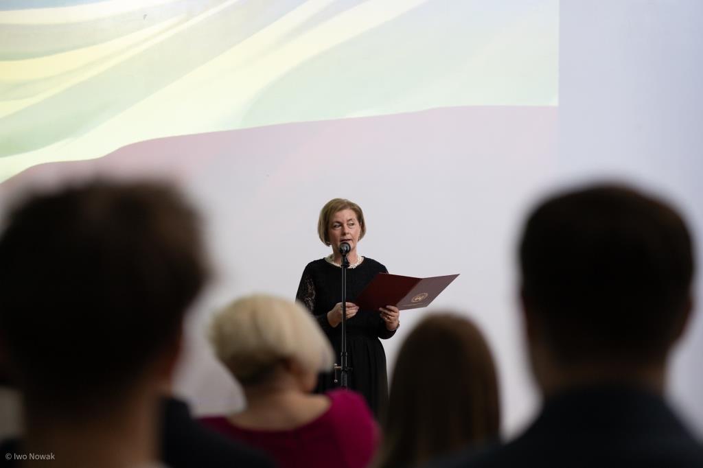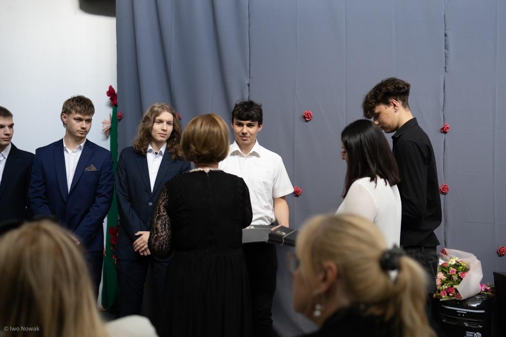 Część oficjalną rozpoczęła Pani Dyrektor Małgorzata Nawojczyk-Bolewska, kierując do absolwentów słowa uznania i podziękowania za ich zaangażowanie, wytrwałość oraz rozwój osobisty. Podkreśliła, jak ważnym doświadczeniem są lata spędzone w szkole i wyraziła nadzieję, że pozostaną one dla młodych ludzi źródłem dobrych wspomnień i inspiracji na przyszłość. Na zakończenie życzyła maturzystom powodzenia na egzaminach maturalnych i zawodowych oraz wielu sukcesów w dalszej drodze.