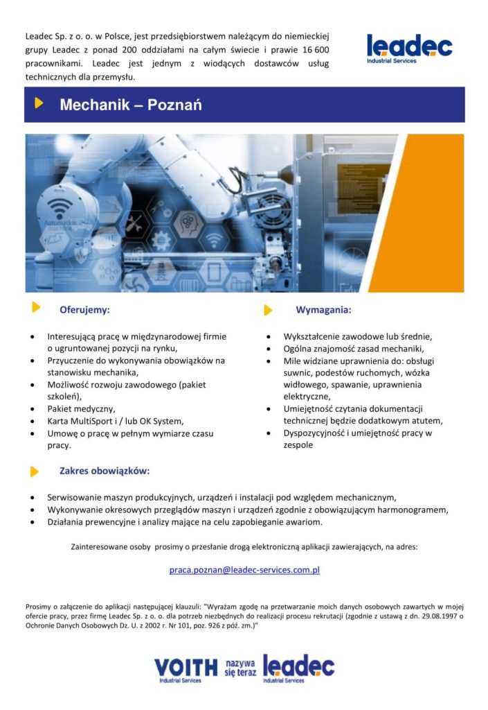 Firma Leadec Sp. z o. o. poszukuje mechaników